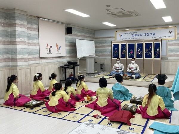 예절교실에 참여한 한 아동은 “예쁜 한복을 입고 친구들과 바른 자세로 전통차를 마시는 경험을 하게 돼 즐거웠다”고 말했다.