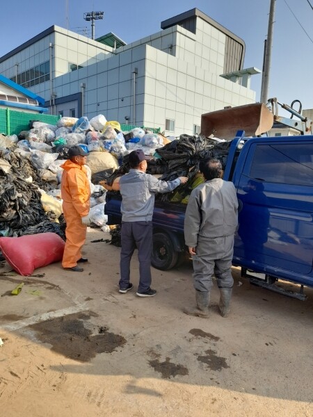 ▲ 양도면 이장단, 영농폐비닐 수거작업 실시