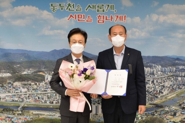 정병헌 명예시장은 이날 오전 시장실에서 박형덕 동두천시장에게 위촉장을 수여 받고 시청 대회의실에서 열린 11월 월례조회에 참석했다.