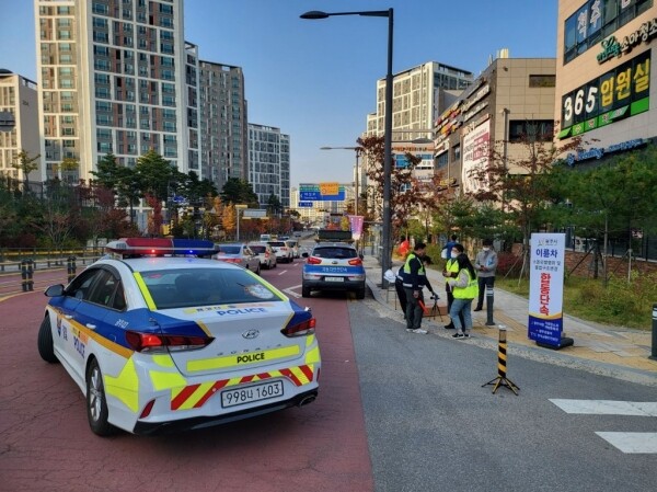 이날 이륜차 운행 시 준수사항 홍보문 배부와 운전자 안전을 위한 형광 안전띠, 헬멧을 나눠 주는 등 캠페인 활동도 함께 이뤄졌다.