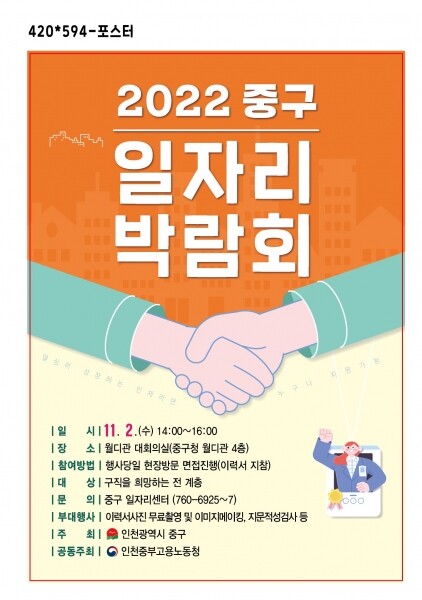 ‘2022년 중구 일자리박람회’ 상세 문의는 중구 일자리센터로 문의하면 된다.