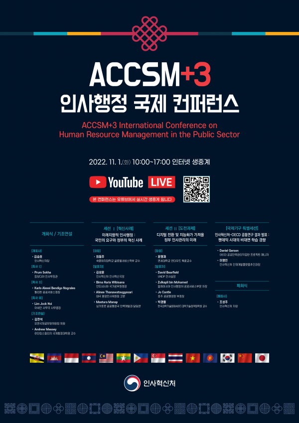 이번 학술대회는 아세안+3 인사행정협력체에 참여 중인 인사처가 지난 2020년부터 준비한 것으로 한국 정부 대표로 아세안 회원국 및 일본과 호주, 경제협력개발기구, 유엔개발계획 등을 초청, 협력망을 공고히 하기 위해 마련됐다.