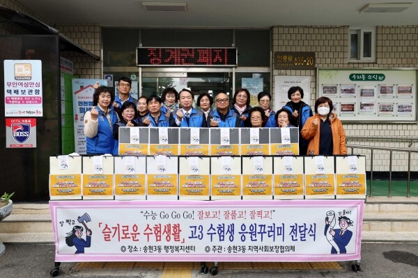 김찬진 동구청장은 “수능을 앞둔 고3 수험생들이 송현3동 지역사회보장협의체의 격려와 응원 메시지로 좋은 성과를 얻길 바란다”며 “앞으로도 관내 청소년들을 위한 다양한 사업이 추진될 수 있도록 더욱 힘쓰겠다”고 말했다.