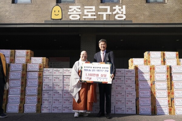 전달식에는 정문헌 구청장과 동국대학교 불교대학원 총동창회 회장 월제혜담 스님 및 임원들이 참석했으며 종로구는 온누리상품권, 김치, 컵밥 등을 어려운 형편의 주민 108가정에게 지원했다.