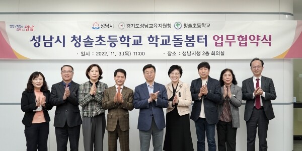 이를 위해 시는 11월 3일 오전 11시 시청 2층 회의실에서 신상진 성남시장과 신승균 성남교육지원청 교육장, 박미연 청솔초등학교장 등이 참석한 가운데 ‘학교돌봄터 설치·운영에 관한 업무협약’을 했다.