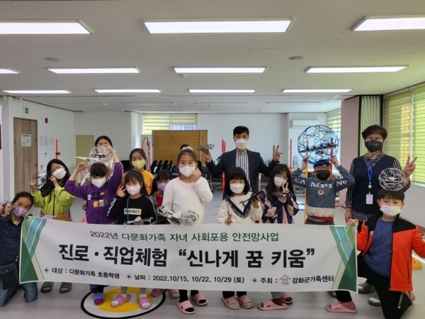 [뉴스써치] 강화군가족센터는 지난달 매주 토요일 3회에 걸쳐 다문화가족 초등학생 12명을 대상으로 자몽청 만들기 가죽공예 핸드폰가방 만들기 드론조종 등 진로·직업 체험프로그램을 진행했다고 밝혔다.