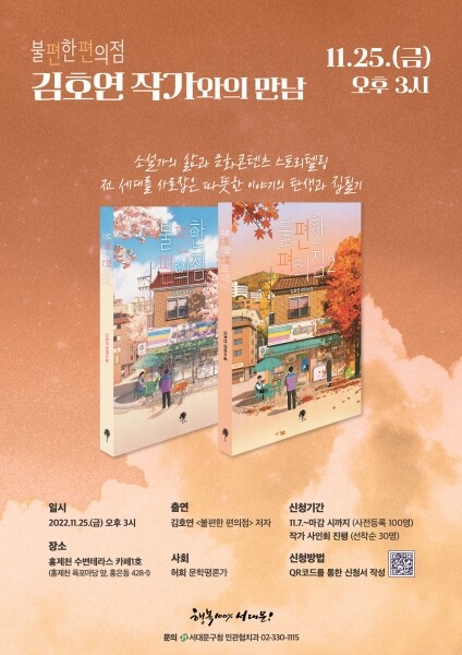 특히 이번 ‘작가와의 만남’이 열리는 ‘홍제천 수변테라스 카페1호’는 ‘서울형 수변감성도시’ 선도 사업으로 재탄생되는 곳이어서 의미를 더한다.