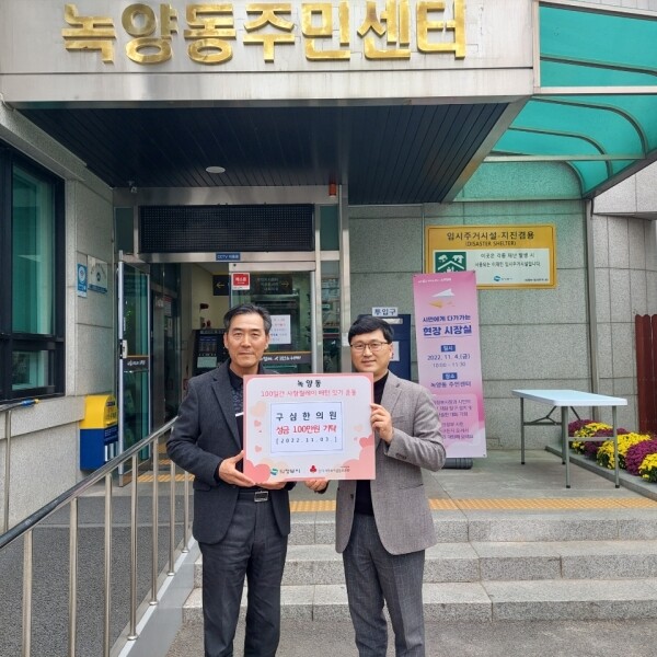 이에 김상록 녹양동장은 “100일간 사랑 릴레이 배턴 잇기에 함께해 주신 구심한의원에 깊은 감사를 드리며 어려운 이웃들이 따뜻한 겨울나기에 보탬이 되도록 성금은 소중히 전달하겠다”고 밝혔다.