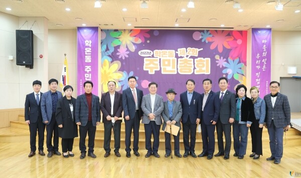 이헌수 학온동 주민자치회장은 “오늘 주민들의 적극적인 참여 덕분에 총회를 무사히 마칠 수 있었다”며 “앞으로도 주민들의 의견과 다양한 목소리를 반영해 내년 주민세 마을사업을 추진하겠다”고 밝혔다.