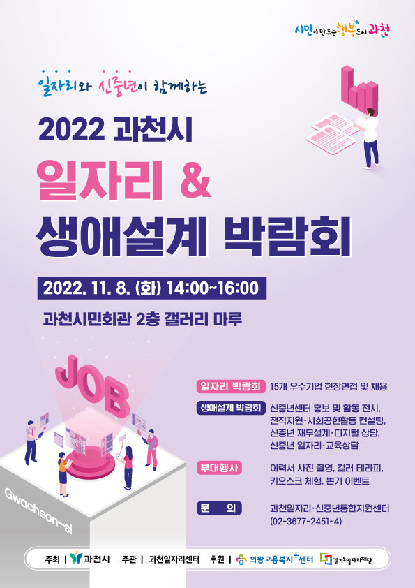 박람회 참여를 희망하는 모든 구직자는 과천일자리센터에 전화로 사전 신청한 뒤, 이력서와 자기소개서 등을 지참해 행사 현장을 방문하면 면접에 참여할 수 있다.