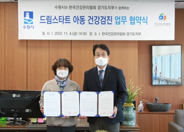 4일 한국건강관리협회 경기도지부에서 열린 협약식에는 김수정 수원시 보육아동과장, 김계환 한국건강관리협회 경기도지부 본부장 등이 참석했다.