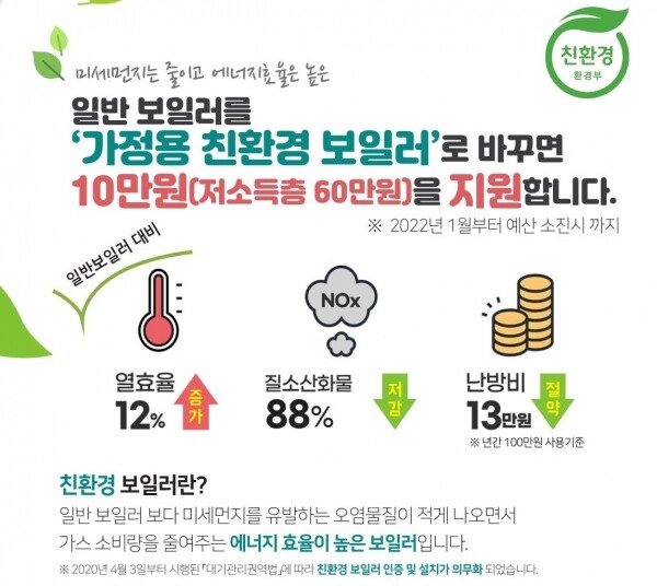 기존 지원 대상은 친환경 보일러 설치 의무화 시행일인 2020년 4월 3일 이전에 친환경 보일러로 교체한 가구만 해당했다.