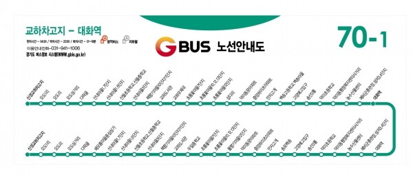 이번에 개통하는 70-1번의 경우 1일 5대 35회가 운행되며 주요 경유지로는 해오름마을중심상가 산내마을1,2,3,6,7단지 책향기마을 10,11단지 교하도서관 교하우체국 초롱꽃마을 6,7,10,12,13단지 삽다리~덕이동 대화역 등이다.
