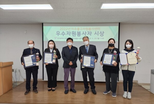 윤계림 미추홀구자원봉사센터 소장은 “센터는 자원봉사 활성화를 위해 헌신해 주시는 자원봉사자를 분기별로 선정하고 미추홀구청장 훈격 표창 수여를 통해 자원봉사자의 사회적 인정 및 자긍심을 고취시키고 있다”며 “우수자원봉사자 수상을 받은 여러분들의 헌신과 노고에 감사드린다”고 말했다.