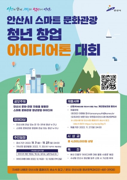 이혜숙 청년정책과장은 “안산의 문화관광 자원을 활용해 혁신적인 창업 아이디어를 갖춘 예비·초기 창업자를 발굴할 수 있도록 많은 관심과 참여를 당부드린다”고 말했다.