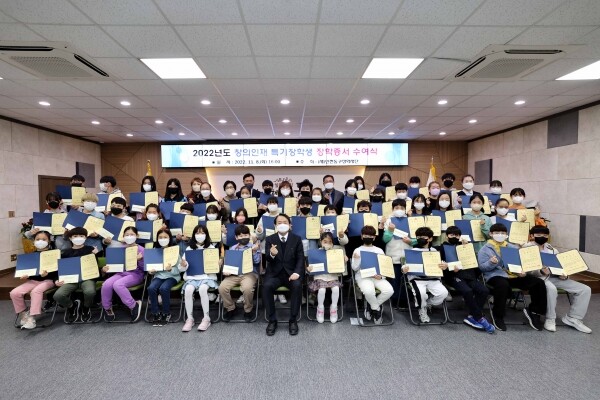대상은 체육, 문화·예술, 수학·과학 등 각종 창의인재 분야의 대회에서 입상실적이 있는 초·중·고등학생으로 총 67명을 장학생으로 선발해 1인당 최대 100만원의 장학금을 지원했다.