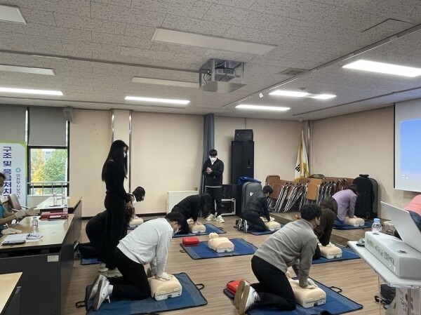 이번 교육은 가톨릭대학교 의정부성모병원의 응급의학과 의사 1명, 응급구조사 3명의 전문 강사로 교육내용은 교육 동영상을 시청하며 교육인형을 대상으로 심정지 예방법, 자동심장충격기 사용법과 심정지 확인, 도움 및 119신고요청, 가슴압박 30번 시행, 인공호흡 2회 시행, 가슴압박과 인공호흡의 반복 등 응급상황 시 발생할 수 있는 실제상황 위주로 이론과 실습을 병행해 진행 후 실기테스트에 합격하면 수료증을 교부한다.