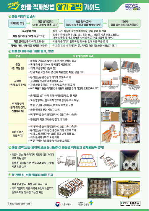 최근에도 적재 중 무너진 화물에 맞거나 컨테이너 개방 중 원단이 쏟아져 운송자가 사망한 바 있어, 사고 예방을 위해 화물의 형상에 따라 올바르게 적재·하역할 수 있는 기술자료를 제공한다.