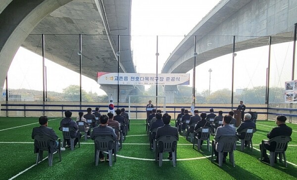 이날 준공 행사에 참석한 이창우 고촌읍장은 “전호대교 하부구간은 방치 차량으로 우범지역화가 돼 범죄우려가 만연한 지역이었다”며 “고촌 전호다목적구장을 조성함으로써 주변 경관 개선은 물론 읍민에게 생활체육시설 향유 공간을 제공한 것에 대해 기쁘게 생각한다 앞으로도 고촌읍민이 체육, 문화를 향유할 수 있는 공간을 확충하기 위해 노력하겠다”고 말했다.