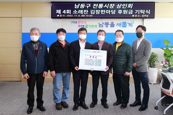 이번 후원금 기탁은 남동구 내 5개 전통시장 회장들이 뜻을 모아 지역 소외 계층에 김치를 전달하기 위한 목적으로 마련됐다.