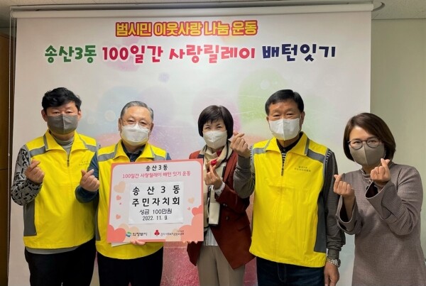 한편 ‘100일간 사랑릴레이 배턴 잇기’는 2006년부터 시작된 범시민 이웃사랑 나눔 캠페인으로 내년 설 연휴가 시작되기 전인 2023년 1월 20일까지 진행되며 기탁을 원하는 경우 송산3동행정복지센터 복지지원과를 통해 누구나 참여가 가능하다.