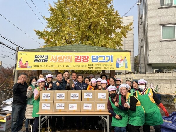 남기준 중산2동장은 “이런 뜻깊은 행사를 주관한 새마을부녀회와 참여해 준 직능단체 회원들에게 감사드리며 이번 김장김치가 추운 겨울 생활이 어려운 이웃들이 따뜻한 겨울을 나시는 데에 작은 보탬이 되길 바란다”고 전했다.