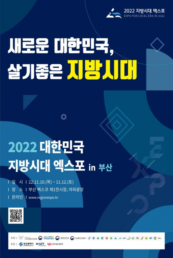 [뉴스써치] ? 산업통상자원부는 대통령 직속 국가균형발전위원회와 자치분권위원회, 행정안전부, 17개 시·도와 함께 11월 10일부터 11월 12일까지 3일간, 부산 벡스코에서 ‘2022 대한민국 지방시대 엑스포 in 부산’을 개최했다.