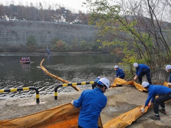 대규모 수질오염사고라는 재난 상황을 부여해 현장 상황 전파 및 보고 오일 유출 설비 정지 조치 및 수계 유입 차단 오일펜스 설치 및 유류 흡착 제거 오염 확산 여부 조사 및 시료 채취 방재작업 완료 상황 보고를 끝으로 마무리됐다.