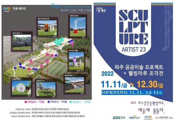 파주를 삶과 창작의 터전으로 삼고 있는 23명의 조각가들이 참여해 위드 코로나 시대에 지쳐있는 시민들에게 긍정적 에너지를 주고 치유의 장이 되도록 파주 웰빙마루에 미술사적 의미가 있는 조각작품을 설치했다.