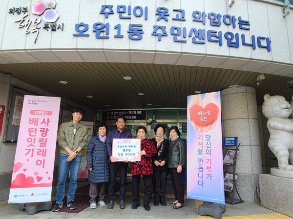 앞으로도 주변을 돌아보며 함께 만드는 따뜻한 호원1동을 만들기 위해 노력하겠다”고 밝혔다.