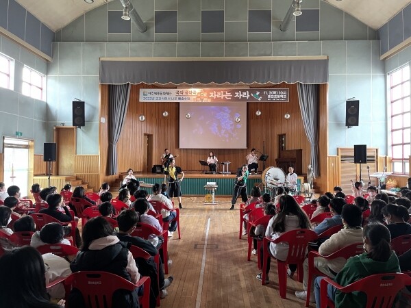 ‘국악 음악극-자라는 자라’는 실력 있는 국악 그룹 더 그림이 제작한 공연으로 스크린을 통해 신비로운 바닷속 세상을 입체적으로 펼쳐내 학생들의 호기심을 자극하고 해설과 교육적인 퍼포먼스를 접목해 재미를 더한다.
