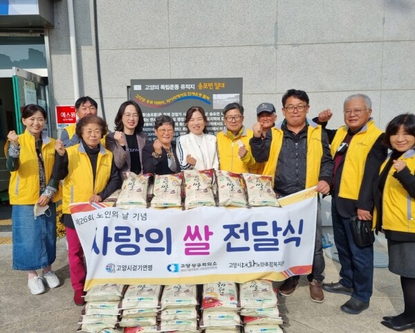 쌀 전달은 대화노인종합복지관과 고양시걷기연맹과 고양상공회의소 여성기업위원회·사회공헌위원회이 함께했다.