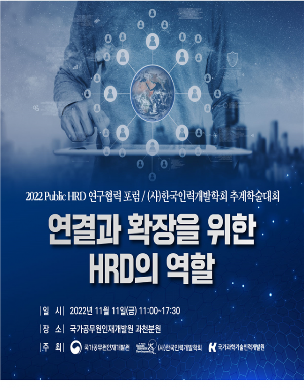 국가공무원인재개발원은 11일 국가인재원 과천분원에서 400여명이 참석하는 ‘2022 공공 인적자원개발 연구협력 공개 토론회/한국인력개발학회 추계학술대회’를 개최한다고 밝혔다.