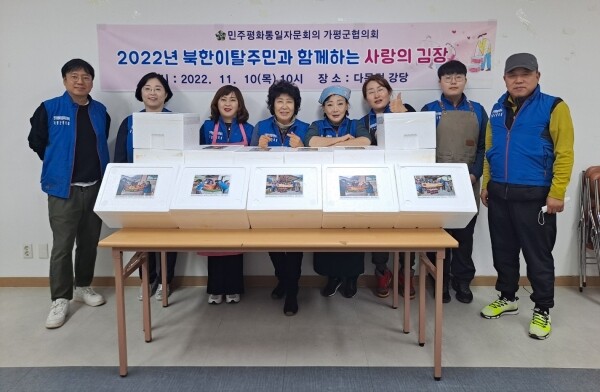 민주평화통일자문회의 가평군협의회에서는 “먼저 온 통일”이라는 말처럼 탈북민들에게 한국에서의 정착 지원에 조금이나마 도움을 주고자 매년 김장김치 나눔을 진행했으며 탈북민들은 함께 하지 못해 죄송하다며 맛있게 잘 먹겠다고 감사를 표했다.