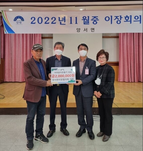 한편 기탁된 성금은 양서면 공동모금회 계좌로 입금돼 어려운 이웃을 위한 사업비로 쓰일 예정이다.