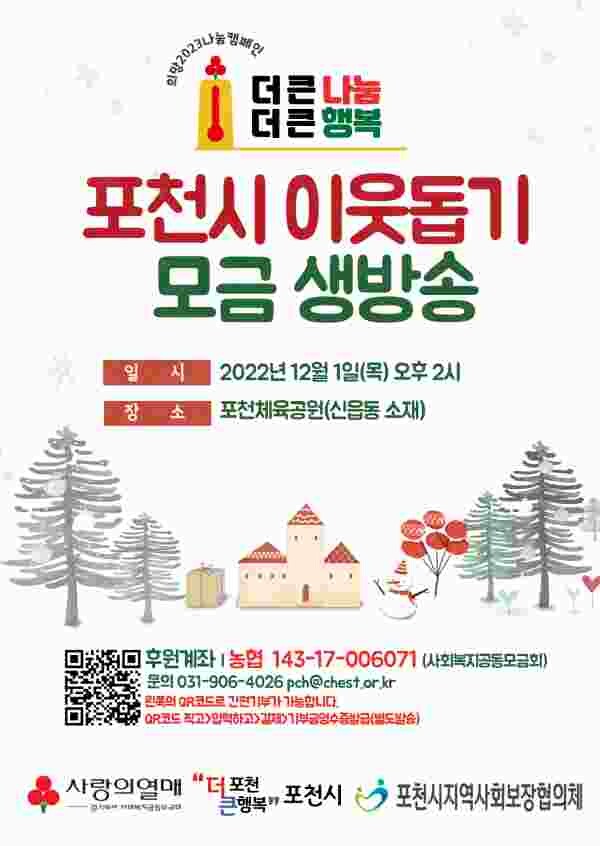 방송 당일 포천시청 유튜브에서 ‘포천시 이웃돕기 생방송’을 실시간으로 시청할 수 있다.