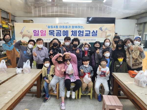 프로그램에 참여한 아동들은 생활 목공예 기초 기술을 습득하고 나무를 재활용해 연필꽂이를 직접 제작했다.