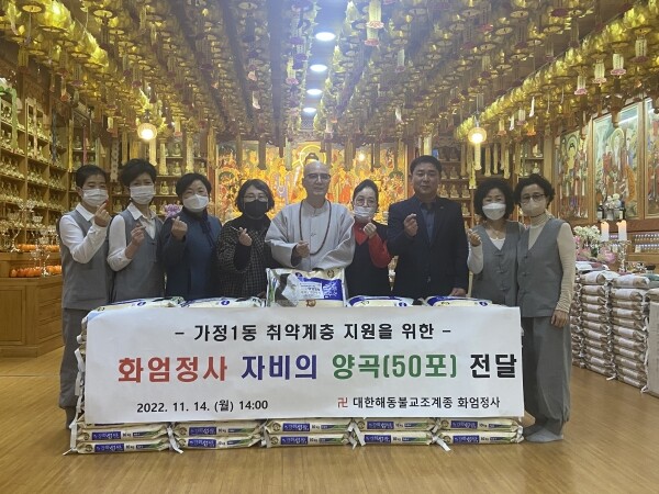 강선숙 가정1동장은 “지역사회 내 어려운 이웃에 대한 화엄정사의 따뜻한 관심과 지원에 감사드린다”며 “기탁받은 쌀을 생계에 어려움을 겪는 소외계층에게 소중히 전달하겠다”고 전했다.