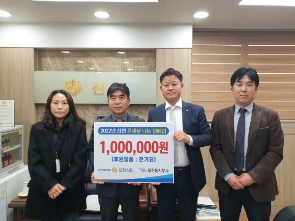 전은우 포천동장은 “올해도 잊지 않고 나눔을 실천해 주신 포천신용협동조합에 감사드린다 관내 어려운 이웃들이 올겨울 따뜻하고 편안하게 보낼 수 있게 됐다”며 감사함을 표했다.