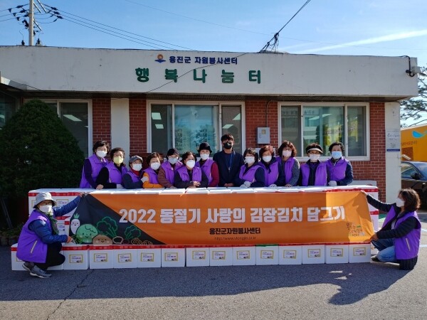 ‘코로나-19’감염병으로부터 봉사활동 현장의 안전을 위해 전문업체에 의뢰해 구매한 김장김치를 지역별로 모집한 자원봉사자들이 직접 수혜대상자에게 전달하는 대면활동으로 그간의 안부를 확인하는 등 따뜻한 온정을 나누는 행사로 진행됐다.