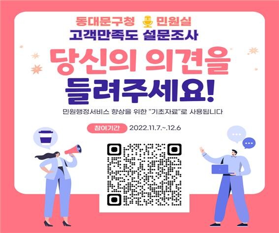 동대문구청 1층 종합민원실 곳곳에 비치된 설문지를 직접 작성해 의견을 제출할 수 있으며 온라인으로도 참여할 수 있다.
