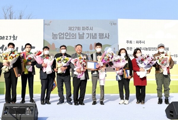 이날 기념식에서는 파주시 농어업 관련 최고 권위의 농어민대상 수상자를 시상했으며 고품질쌀 생산 부문 강원석 채소·특작 부문 김현오 축산 부문 사택환 수산 부문 김현옥씨가 수상의 영예를 안았다.