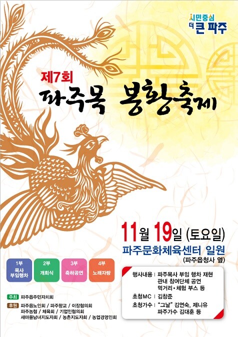 파주목의 유구한 역사와 문화를 되새기는 파주목 봉황축제는 향교 고유례를 시작으로 파주목사 부임행차 재현, 파주목관아 체험 등 파주읍 주민과 후대에 선현들의 가르침을 전하는 뜻깊은 자리가 될 것이다.