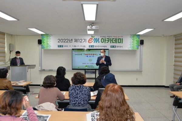 동두천시 EM아카데미는 2009년 수료생 1기를 시작으로 현재 12기 수료생까지 380여명이 수료했으며 특히 11월 7일 개강식에는 박형덕 동두천시장이 직접 참석해 EM에 대한 설명과 인사말을 전했다.