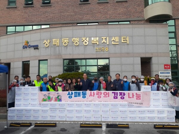 올해 김장나눔 행사 주최는 상패동 사회단체장협의회에서 주관은 상패동 새마을 부녀회와 지도자협의회에서 담당했으며 상패동 산하 10개 단체에서 모은 후원금과 사회복지공동모금회 ‘이웃애 희망나눔 사업’신청을 통해 마련된 자금으로 상패동 새마을부녀회, 통장협의회, 지역사회보장협의체 등 단체회원과 자원봉사자 50여명이 참여해 진행했다.