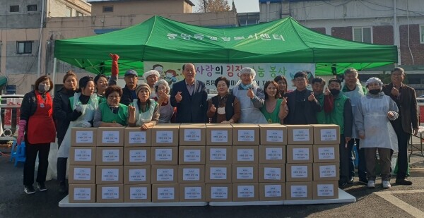 11월 10~11일 이틀 동안 진행된 이번 행사는 새마을협의회 주관으로 단체 회원과 봉사자들이 이른 아침부터 중앙동 행정복지센터에 모여 배추 절이기부터 양념을 버무려 포장하는 모든 과정까지 정성과 노력을 기울였다.