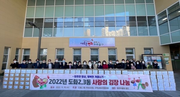 4분기에는 주민자치회와 지역사회보장협의체 그리고 통장자율회가 사랑의 김장김치 총 7kg 455박스를 어려운 이웃, 경로당 등에 전달하는데 힘을 합쳤다.