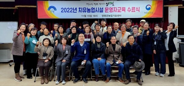 교육은 관내 치유농장 품질인증 희망 농업인 24명을 대상으로 기초 100시간, 심화 50시간으로 진행됐으며 수료기준인 출석률 80% 이상과 사업계획서 및 실습보고서를 제출한 23명이 최종 수료했다.