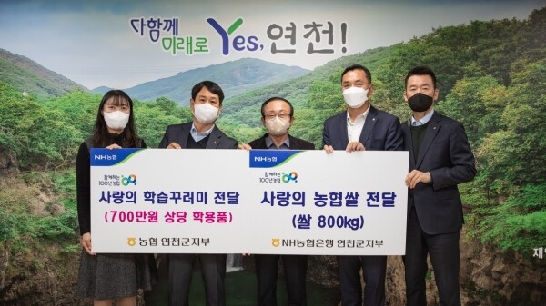 NH농협은행 연천군지부는 쌀 소비촉진으로 농촌소득 진작에 기여하고 쌀 나눔을 통해 소외계층을 지원하고자 사랑의 쌀 나눔과 관내 어려운 가정의 아동·청소년을 위한 학습꾸러미 지원사업을 함께 진행했다.