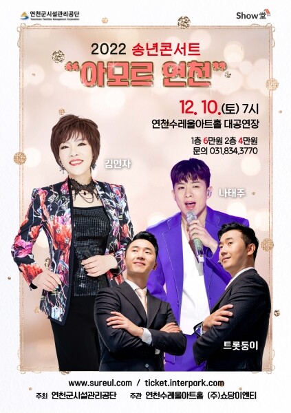 송승원 연천군시설관리공단 이사장은 “흥겨운 송년 콘서트를 통해 우리 지역민뿐만 아니라 관객들에게 따뜻한 위로와 박수를 전하며 묵은 한 해를 씻겨주고 다가오는 새해를 힘차게 출발하는 응원의 의미가 전달되길 바란다”고 말했다.